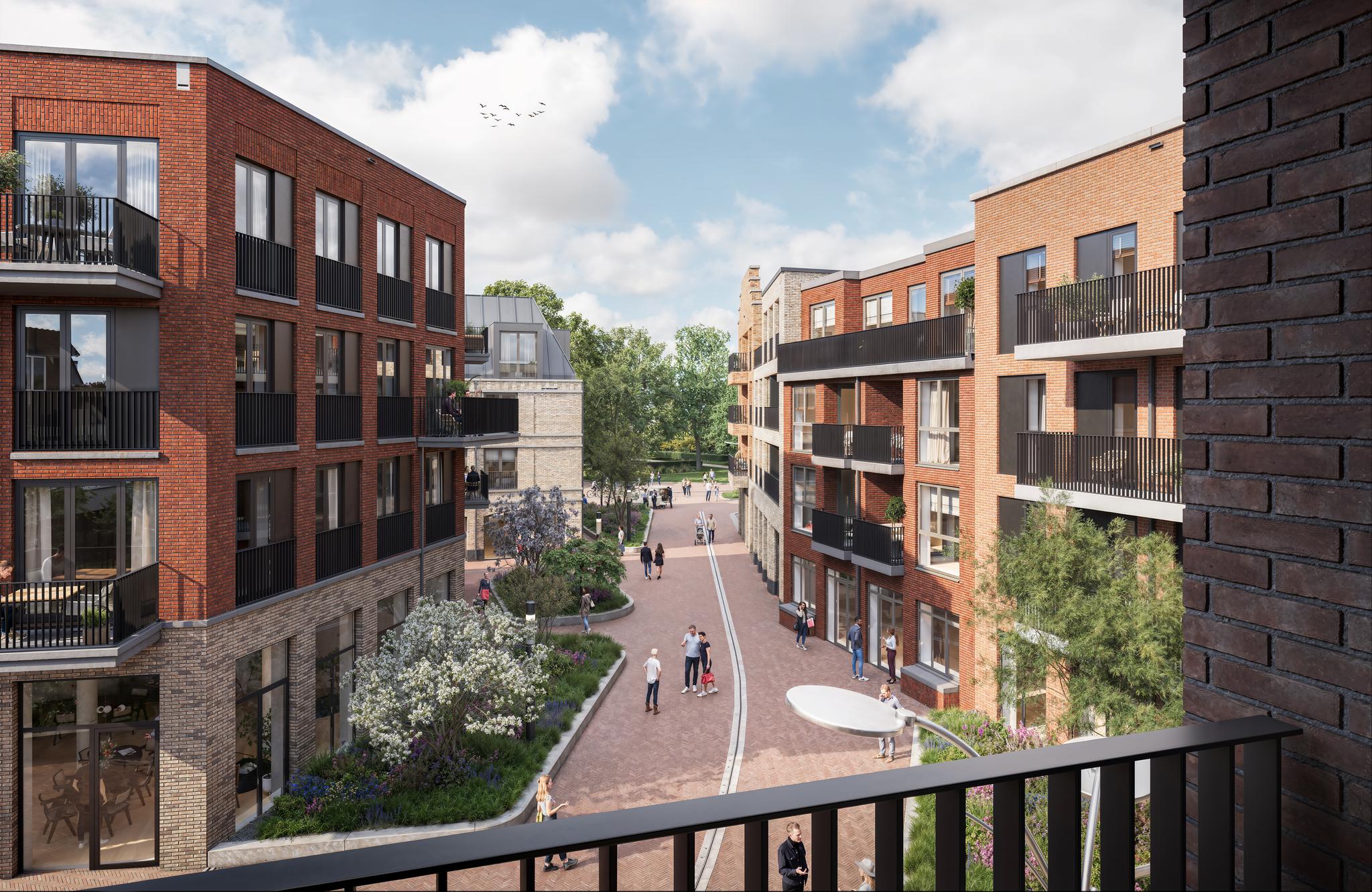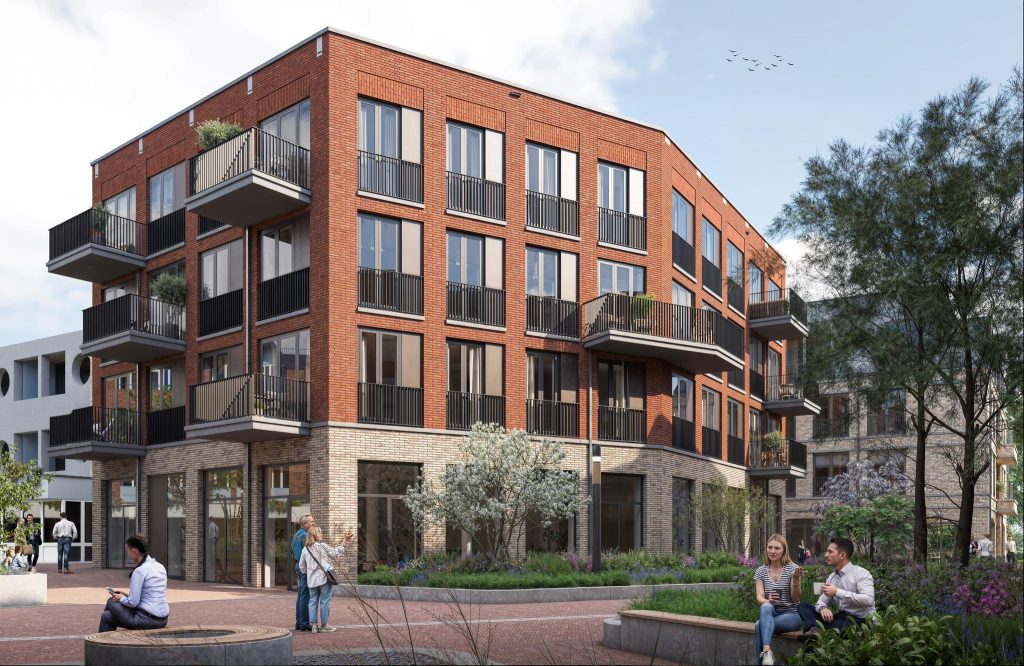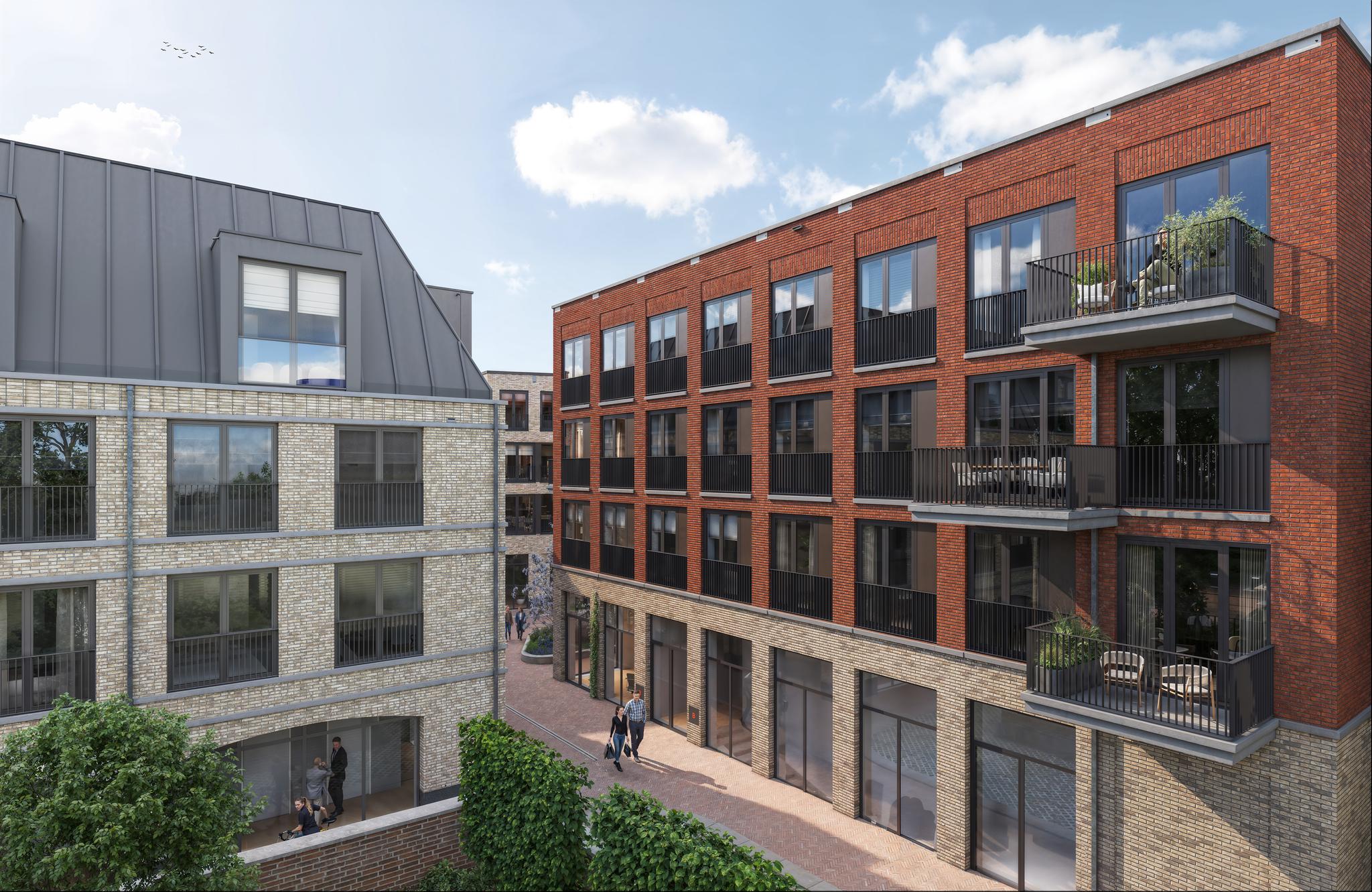 Aan het groene binnenplein is het een komen en gaan van mensen. Hier staat De Barones, een stoer gebouw met 15 appartementen dat rust en klasse uitstraalt. Het pand heeft een dynamische vorm en wat opvalt is het contrast tussen de lichte plint en de warme kleur metselwerk daarboven. Daarbij is de setting rondom dit nieuwe woongebouw helemaal gericht op ontspannen en ontmoeten en vind je alle voorzieningen vlakbij!