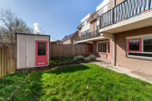 De lichte woonkamer staat in directe verbinding met de tuin, waardoor binnen en buiten naadloos in elkaar overlopen. De tuin biedt voldoende ruimte om te ontspannen, te tuinieren of gezellig buiten te zitten met vrienden en familie. Daarnaast beschikt de woning over een eigen berging, ideaal voor fietsen en extra opslag.