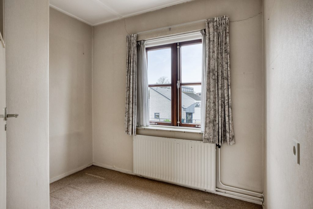 – De kleine slaapkamer aan de voorzijde is een ideale ruimte om een meer uitgebreide badkamer in te realiseren. In de