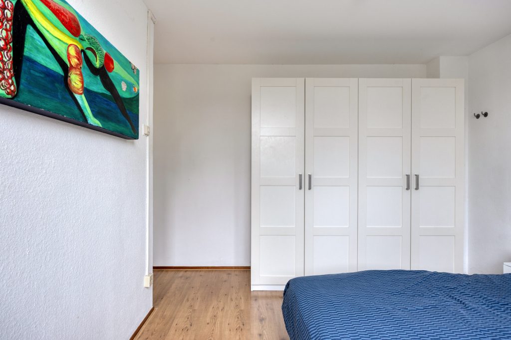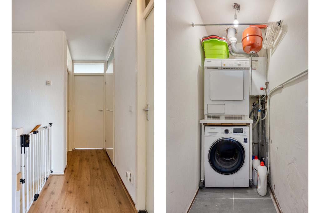 Eerste verdieping: overloop met toegang tot maar liefst vier slaapkamers. Groot genoeg dus voor een groot gezin of de combinatie van wonen en werken aan huis. Op de overloop bevindt zich een ruime inbouwkast, vaste garderobekast en de technische ruimte met opstelling cv-ketel en witgoed.
