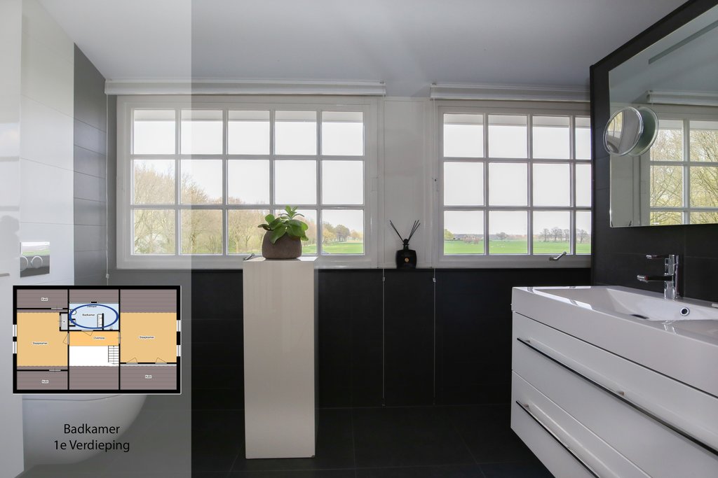 Overloop/vide, twee riante slaapkamers met ingebouwde kasten en een moderne badkamer met ruime inloopdouche, dubbel wastafelmeubel en 2e toilet. Bijzonder is dat de deze badkamer naast vloerverwarming ook deels muurverwarming heeft.