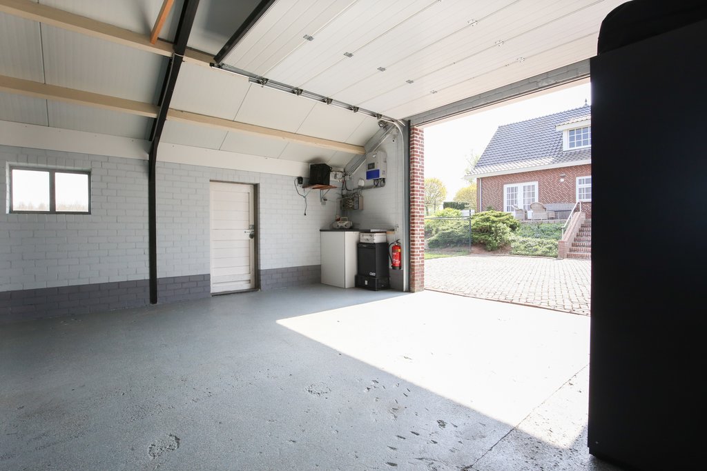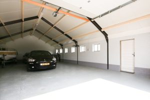 Multifunctionele ruimte te gebruiken als garage/bergruimte of hobby. Deze ruimte is maar liefst 115 m² groot, is in spouw gebouwd met een dak voorzien van isolatie en dakpanplaten, heeft een elektrische garagedeur en een betonnen vloer.
