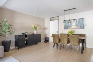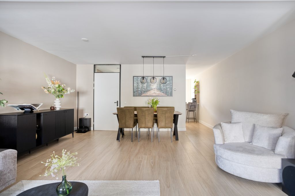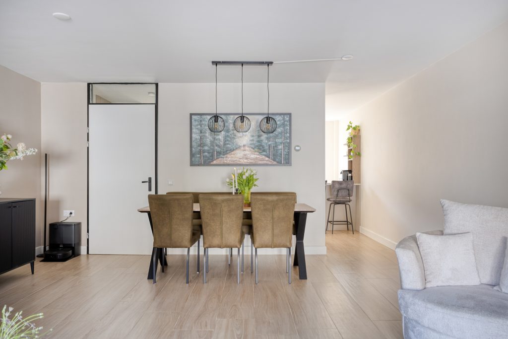 Via de entree kom je binnen in de hal met aan de rechterzijde het toilet en de meterkast. Vanuit hier heb je toegang tot zowel de eerste verdieping als de woonkamer. Dankzij de uitbouw is er een heerlijke, lichte en ruime woonkamer ontstaan met plek voor een gezellige zithoek én een royale eethoek. De begane grond is bovendien voorzien van vloerverwarming, wat zorgt voor extra comfort.