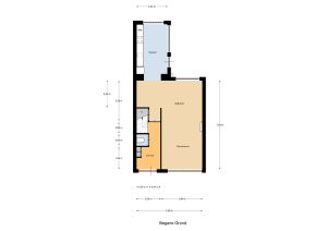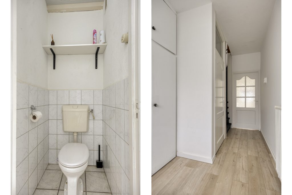 Je komt binnen in de hal met trapopgang, meterkast en een licht betegeld toilet. De woonkamer is licht en voorzien van een laminaat vloer. In de uitbouw bevindt zich de nette keuken (geplaatst in 2007) met volop kastruimte en diverse inbouwapparatuur, waaronder een koelkast, 4-pits gasfornuis, vaatwasser, combioven en afzuigkap. Hier vind je ook de aansluiting voor de wasmachine.
