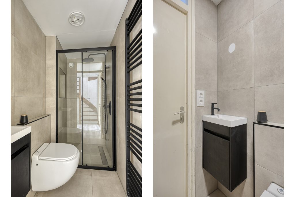 De badkamer is vernieuwd (2024), volledig betegeld en voorzien van een inloopdouche, 2e toilet (sanibroyeur), vaste wastafel en een designradiator.