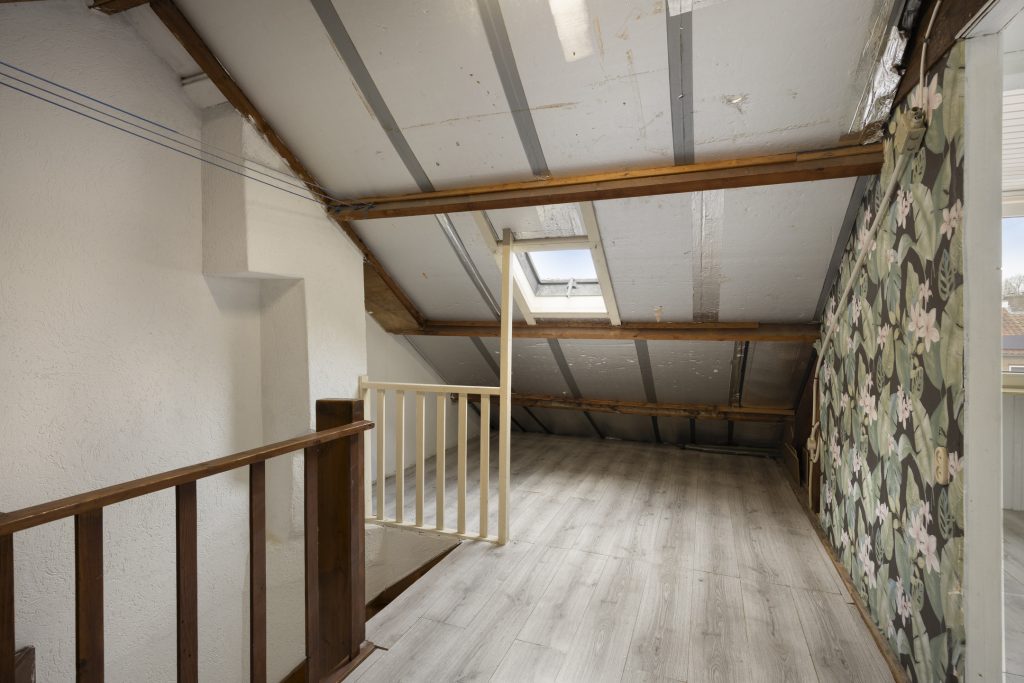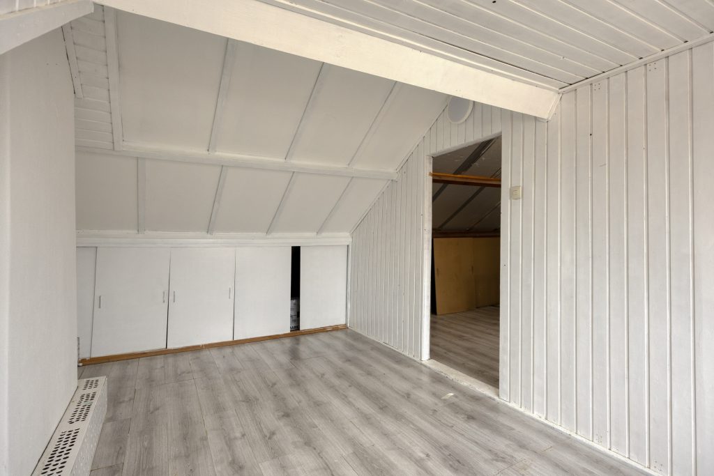 De ruime hobbykamer en voorzolder zijn voorzien van een dakkapel met kunststof kozijnen en HR-beglazing, wat zorgt voor extra licht en ruimte. Daarnaast is er praktische bergruimte achter de knieschotten.