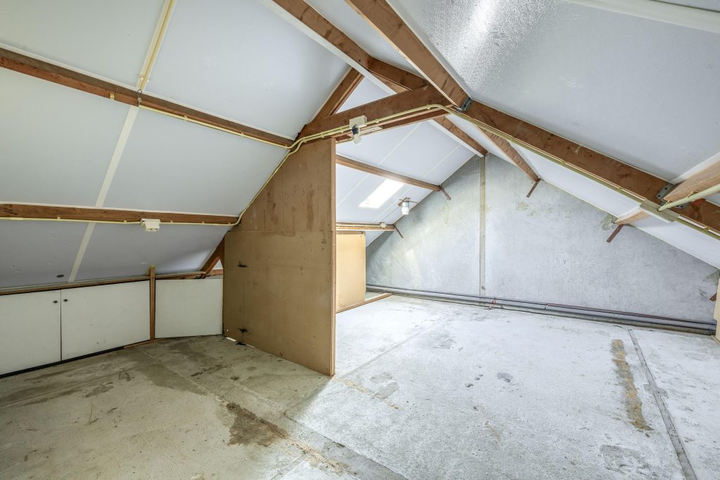 De vaste trap naar de zolderverdieping biedt veel extra mogelijkheden. Deze verdieping kan eenvoudig worden ingericht als vierde slaapkamer, werkkamer of speelruimte. Daarnaast is er volop bergruimte aanwezig en bevindt zich daar ook de CV-ketel.