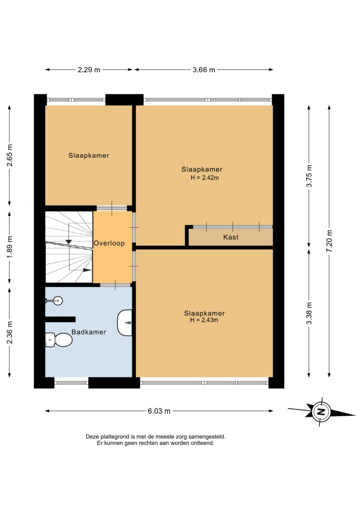 Op de eerste verdieping bevinden zich drie goed bemeten slaapkamers, ideaal voor een gezin, thuiswerkplek of hobbyruimte. De nette en ruime badkamer is voorzien van douche, toilet, wastafel en wasmachineaansluiting.