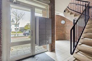 Centrale entree met postvakken en een intercom-/deurbelsysteem en toegang tot het trappenhuis. Vanuit hier bereik je binnendoor de inpandige berging, ideaal voor extra opslag en het stallen van fietsen. Daarnaast beschik je op de begane grond over een eigen (fietsen)berging van ca. 7 m².