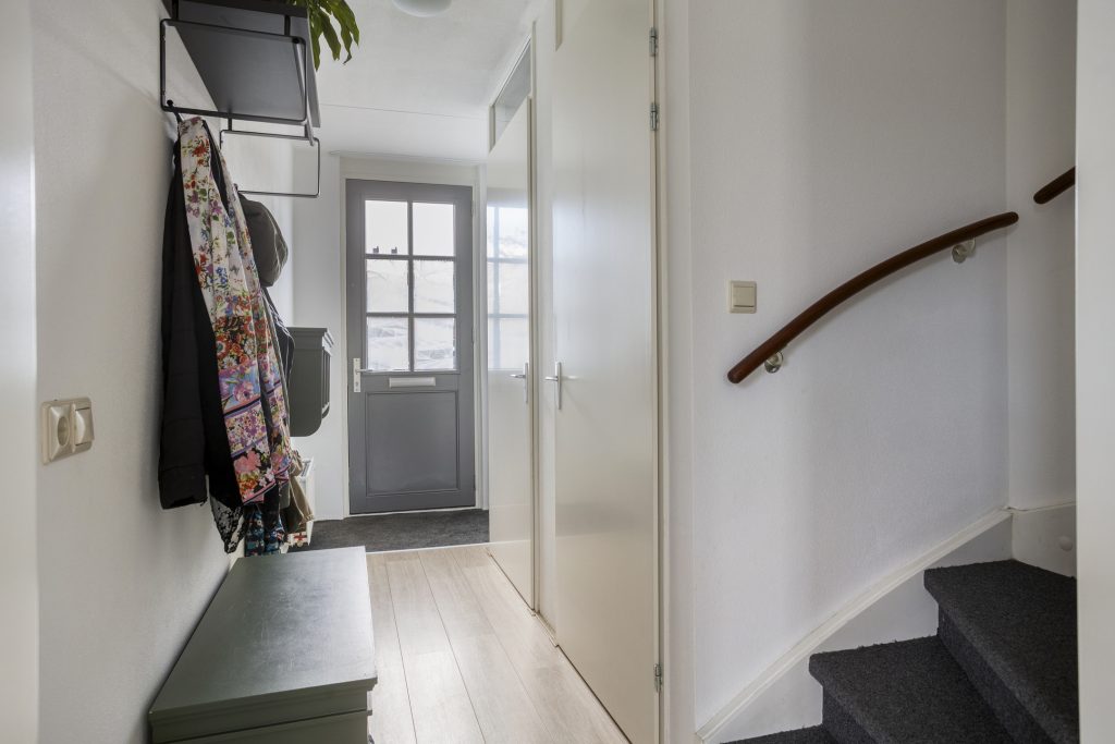 Entree met meterkast, nette toiletruimte met fontein, cv-ruimte (Intergas, 2010, eigendom) en trapopgang. Tuingerichte woonkamer met veel lichtinval door het zijraam en fraai uitzicht over het groen en het water. Via de loopdeur bereik je de achtertuin. Daarnaast een praktische trapkast. De keuken is aan de voorzijde gesitueerd en uitgevoerd in een degelijke opstelling met diverse inbouwapparatuur, waaronder een inductiekookplaat, combi (stoom)oven, afzuigkap en vaatwasser, vaatwasser en een ingebouwde combi koel-/vrieskast.